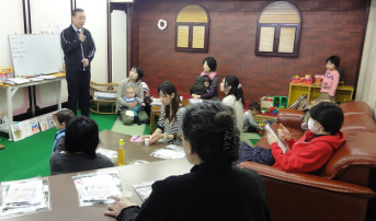 2012年(平成24年)1月23日 次の日は福岡市にあるクレイアさん! 今日で2度目ですが、今回は小さいお子さんをお持ちの主婦の方々が多かったです。 講義中に子供たちはおもちゃで一生懸命! お母様たちも講義に、子供に一生懸命でした。