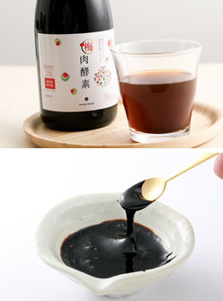 100数種類以上の野菜・果物・キノコ類・穀類・海藻・民間植物と糖質(黒糖など)に、酵母や乳酸菌などの有用微生物を加え発酵させることで植物酵素や栄養素を抽出しました。紀州南高梅を濃縮させた梅肉エキスをプラスしました。