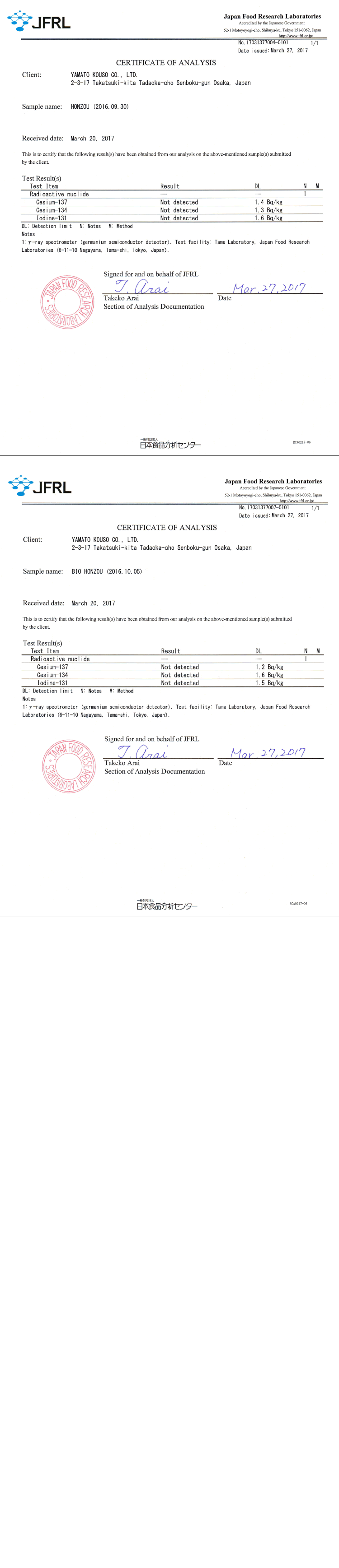 やまと酵素Cresの製品の放射性物質検査結果をホームページにてご報告させていただきます。
