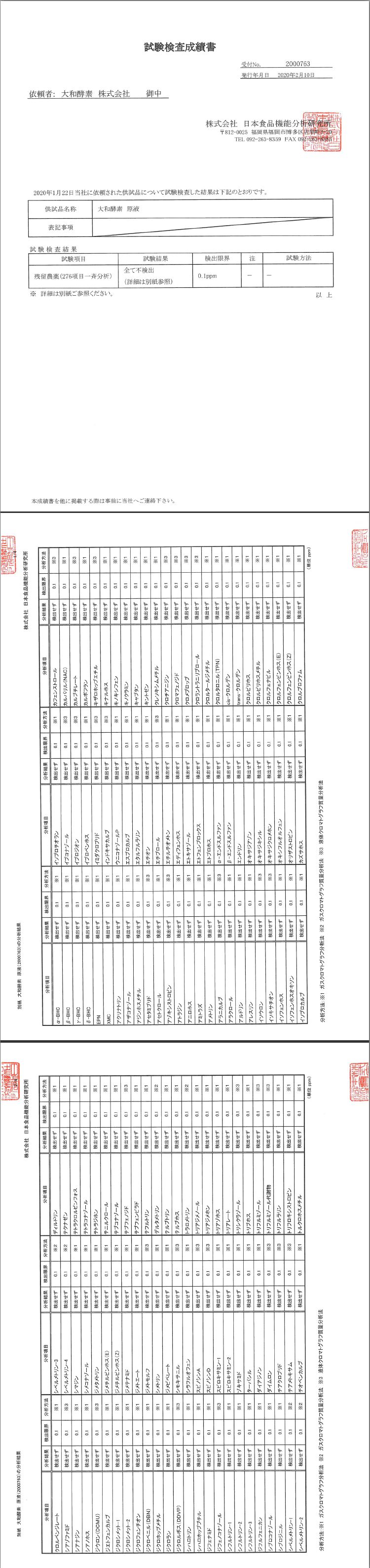 やまと酵素Cresの製品の残留農薬検査結果をホームページにてご報告させていただきます。